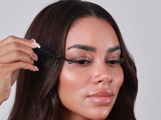 Reinige deine Wimpern ölfrei, damit der Kleber richtig haftet. Dann kommt der Bond nur am Ansatz, nicht an den Spitzen.1 Minute trocknen lassen, dann geht’s los.